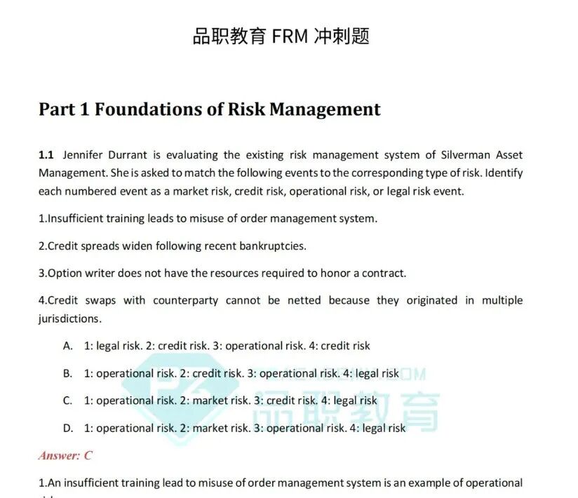 精选FRM冲刺百题,专项训练