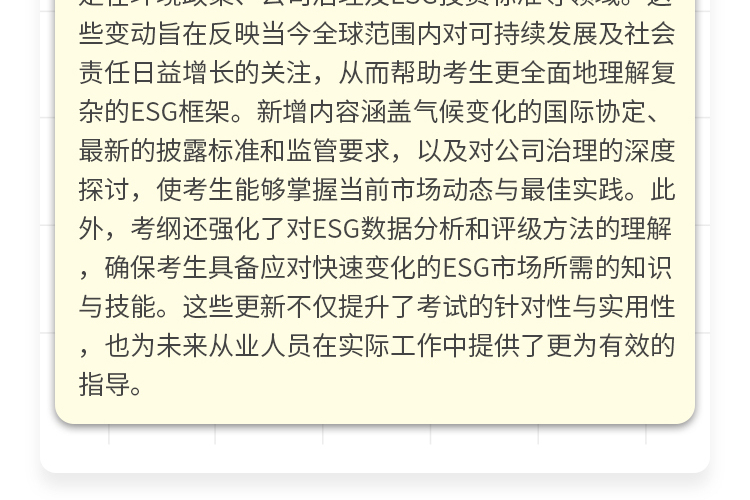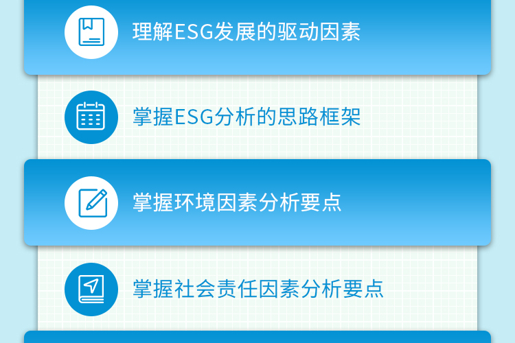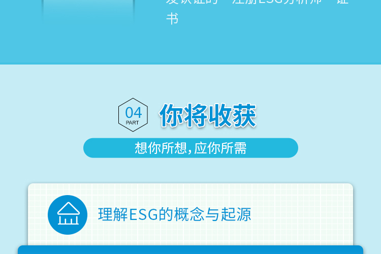 ESG咨询顾问、兼并购业务ESG尽职调研、审计业务(ESG)、ESG评级等。